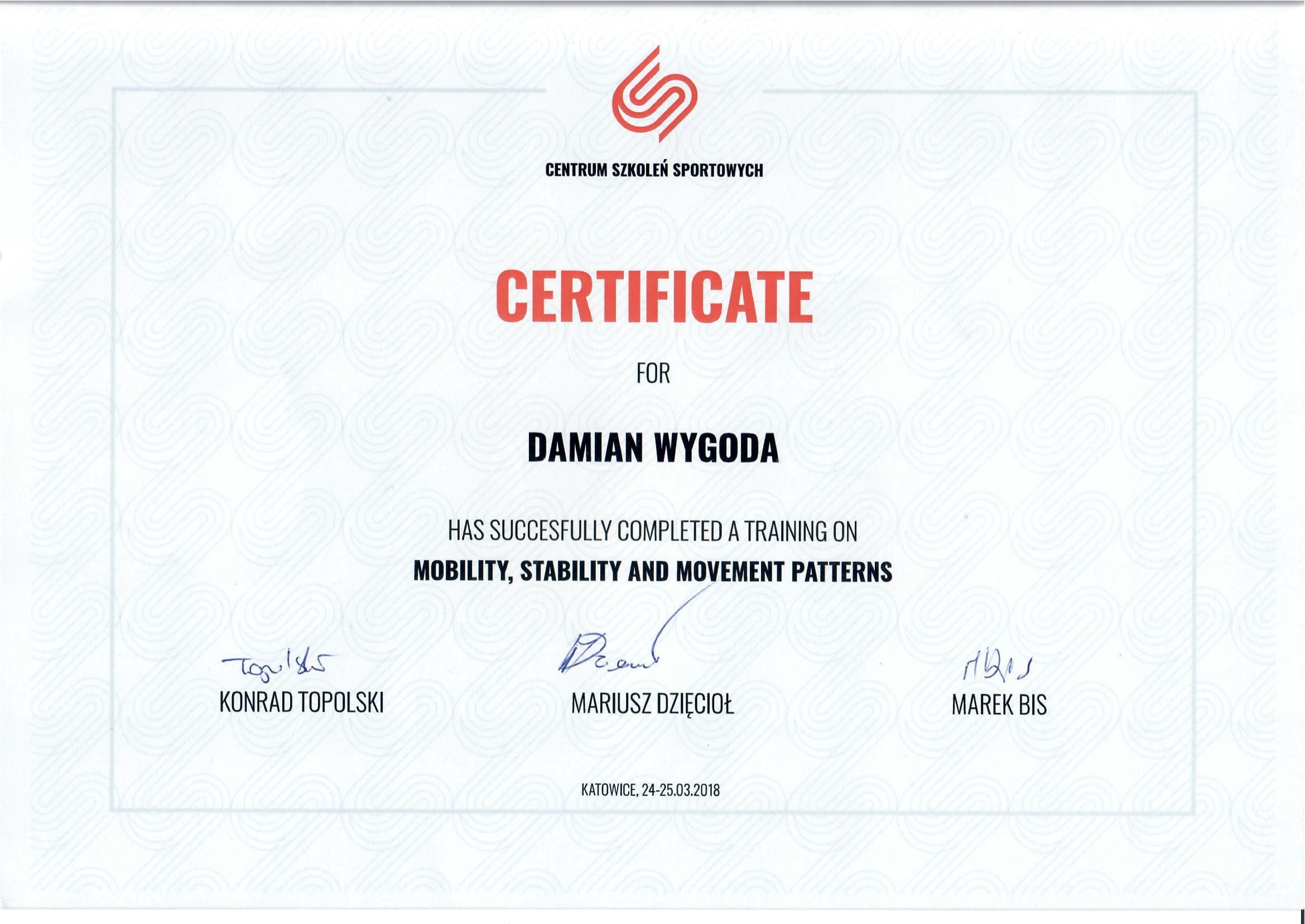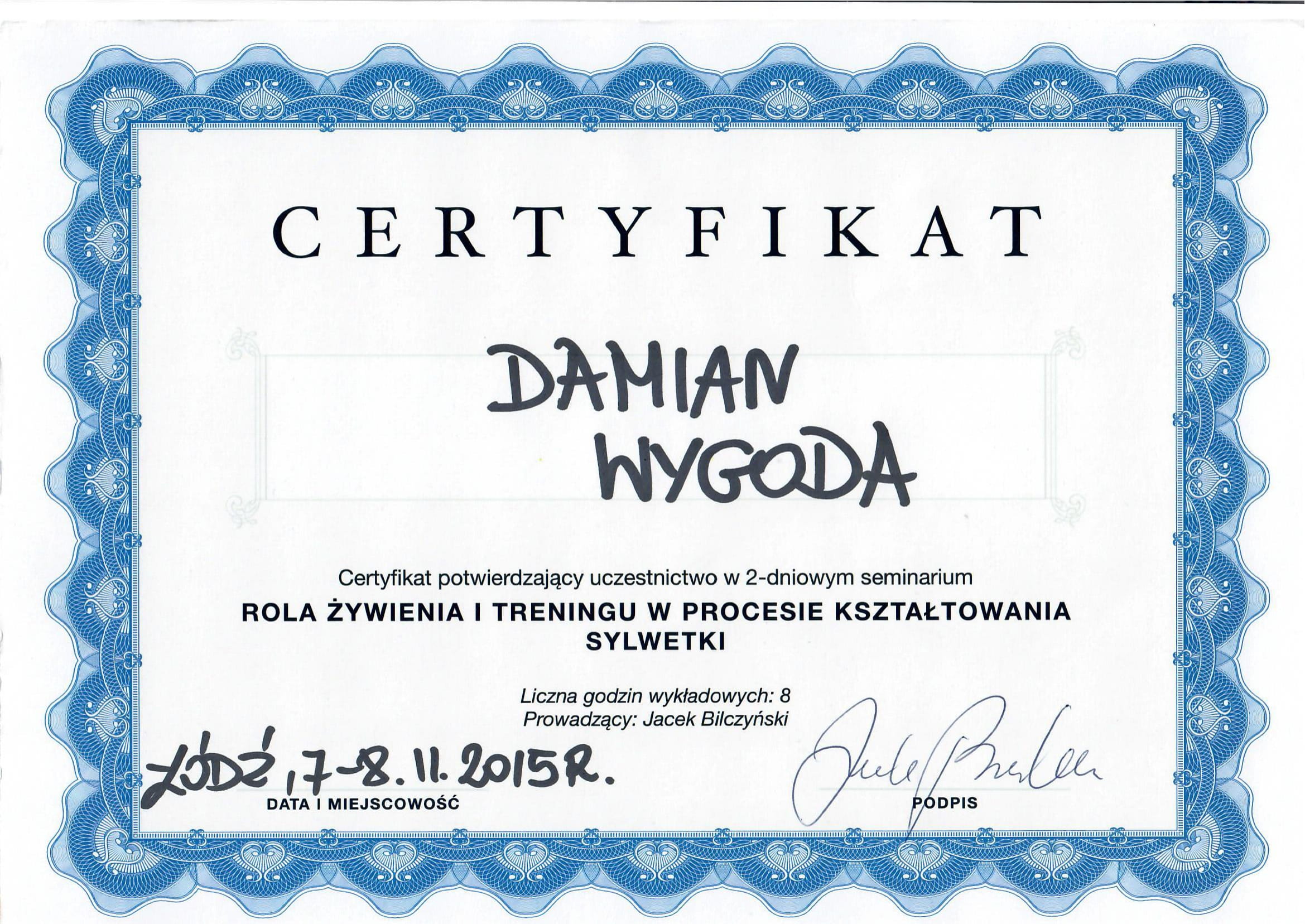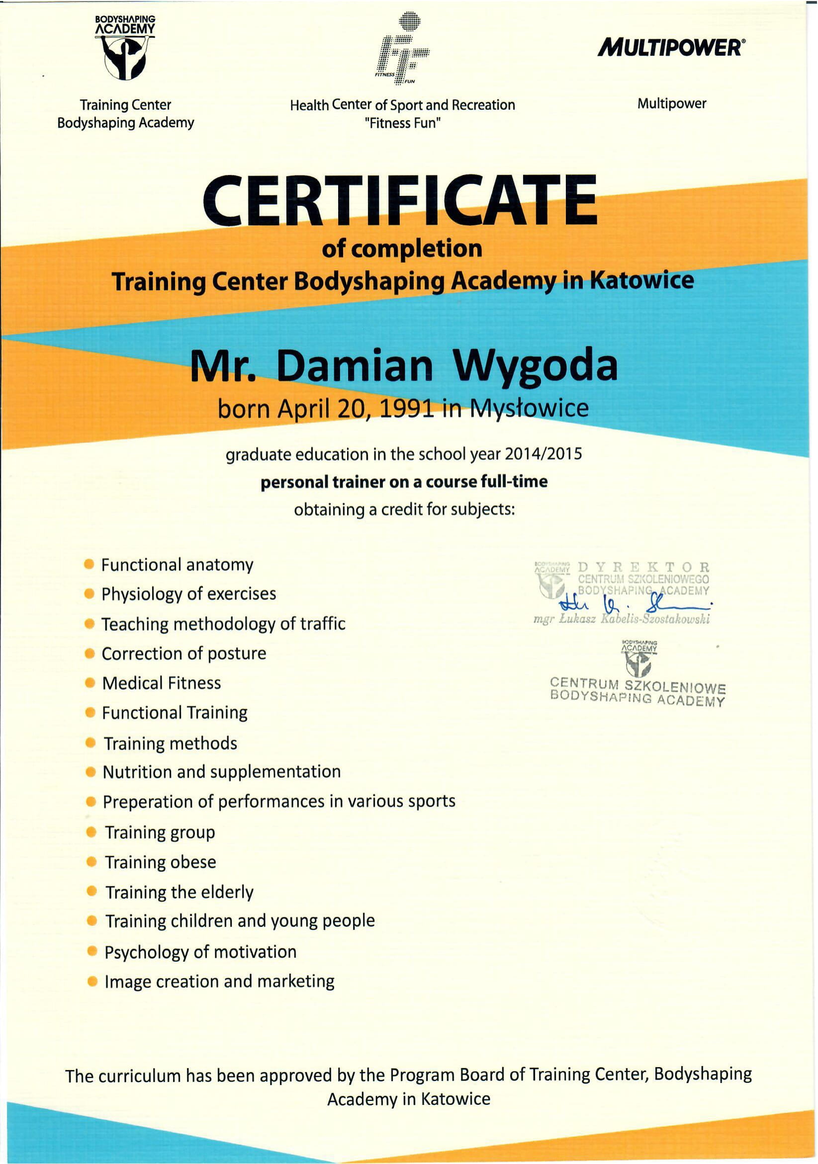 Cześć! Nazywam się Damian Wygoda. Jestem dyplomowanym trenerem personalnym i absolwentem kierunku Fizjoterapii na Akademii Wychowania Fizycznego im. Jerzego Kukuczki w Katowicach.